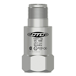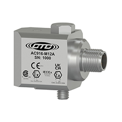 低電容本質安全雙輸出加速度計,加速度和溫度,頂部出口3針連接器,100 MV/G,10 MV/°C,±10%