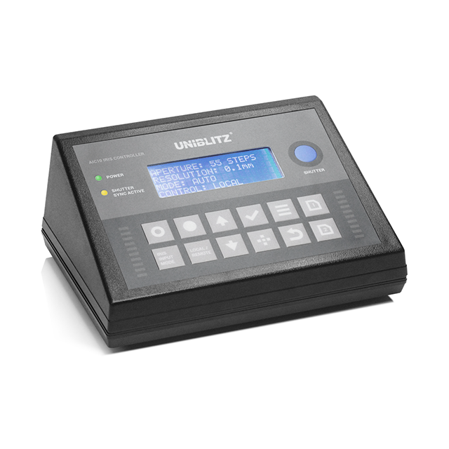 AIC10 是一款臺式電動光圈(自動光圈)控制器,專為與 Uniblitz AI25 自動光圈配合使用而設計。AIC10 具有直觀的按鈕陣列和數字用戶界面,允許它通過修改后的串行命令協議來操作光圈。配備后,AIC10 還將獨立于光圈操作 AI25 的可選高速快門附件。快門的電子同步允許 AIC10 指示快門的狀態。