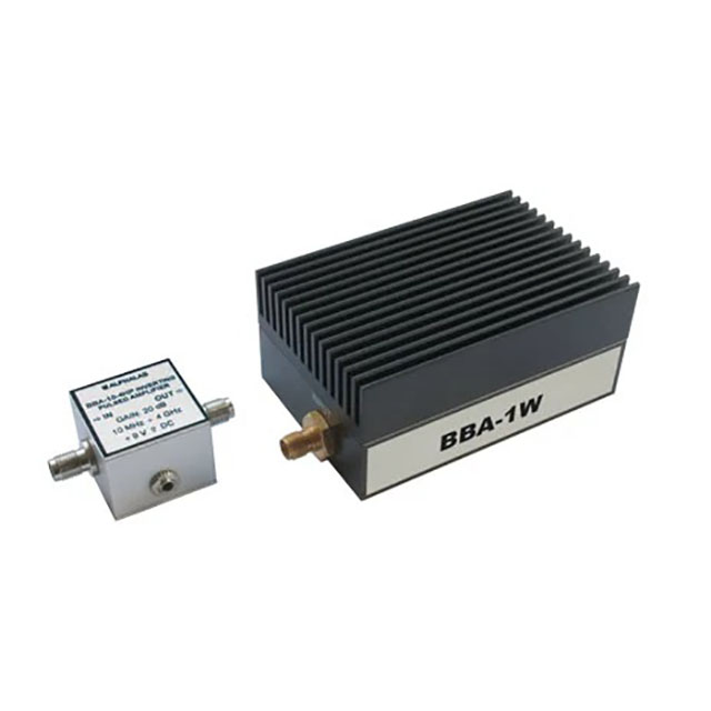 +20 dB增益版本的BBA-10(x10振幅放大)具有僅2.8 dB的低噪聲。BBA-10-4HP是高功率/高頻版本,在50歐姆負載下輸出功率高達70 mW,峰值振幅最大為2.6 V。當需要高輸出水平和更寬的帶寬時,該模型是必不可少的。增益擴展到4 GHz和+13 dB。高功率BBA-1W型號具有1W輸出功率,范圍為50 MHz至1 GHz。