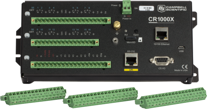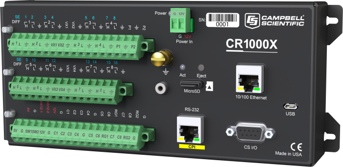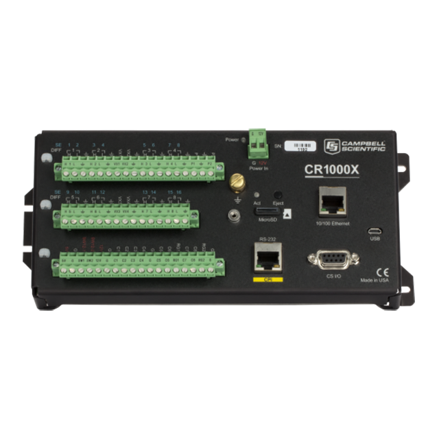 CR1000X是一款低功率的設(shè)備,用于傳感器測量、直接/遠程通訊連接、數(shù)據(jù)分析、外部設(shè)備控制、數(shù)據(jù)和程序的存儲,采用密封裝置屏蔽射頻干擾,金屬不銹鋼外殼。精密時鐘,支持Campbell Scientific 數(shù)據(jù)采集器通用的類BASIC編程語言—具備數(shù)據(jù)處理和分析功能。CR1000X 接線面板上有兩個開關(guān)12 V 端子, 16 個模擬測量端子,端子可拆卸。