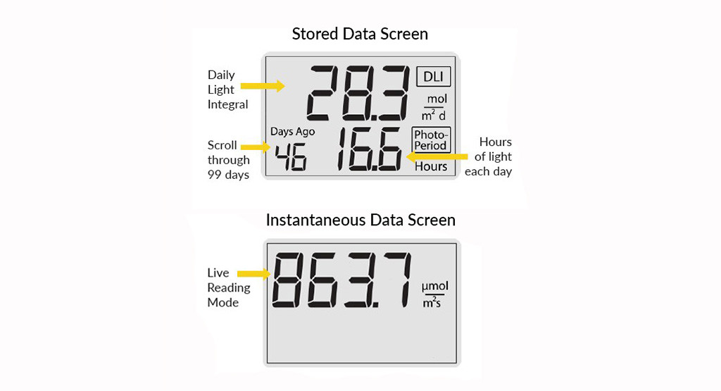 | 數據記錄容量 | 99 天(DLI 和光周期),10 天(30 分鐘 PPFD/ePPFD 平均值) |