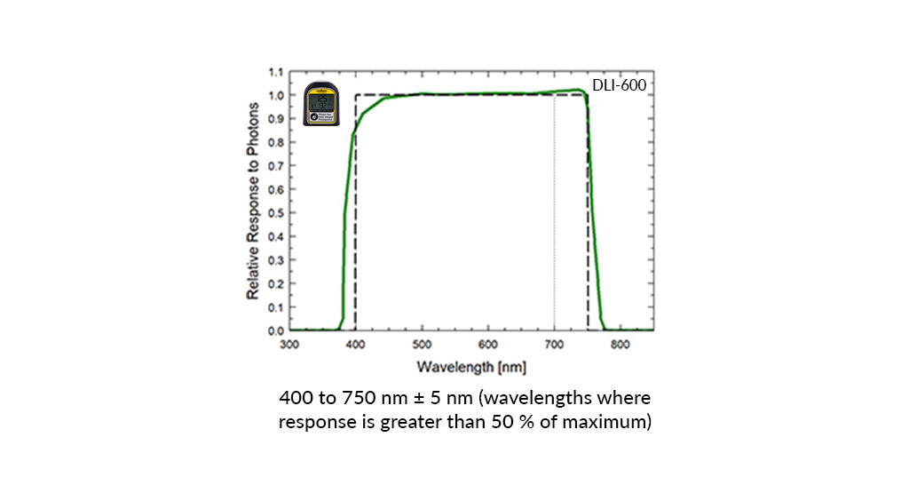 DLI-600 光譜儀 是 2022 年的新產品,是一款優雅、易于使用的設備,用于抽查超出傳統 400–700 nm 范圍的光合有效輻射 (PAR)。DLI-600 測量新定義的 400-750 nm ePAR 輻射范圍,該范圍已被證明具有擴展的光合活性特性。除了測量 ePAR 之外,DLI-600 儀表還計算日光積分 (DLI) 和光周期。ePAR、DLI 和光周期影響植物的生長和發育,通常在溫室和生長室中測量它們以幫助進行光照管理和決策。