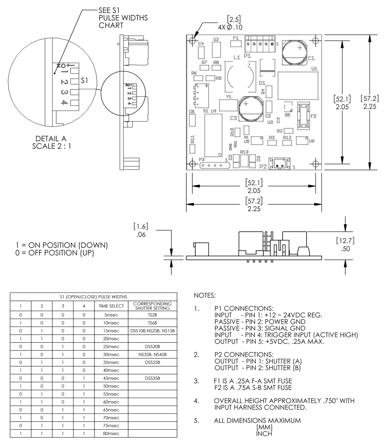 安裝需要連接到用戶提供的電源和輸入和輸出線束連接器,并使用板載 4 位鋼琴開關選擇打開和關閉脈沖持續時間。TTL 脈沖持續時間決定快門的曝光時間。