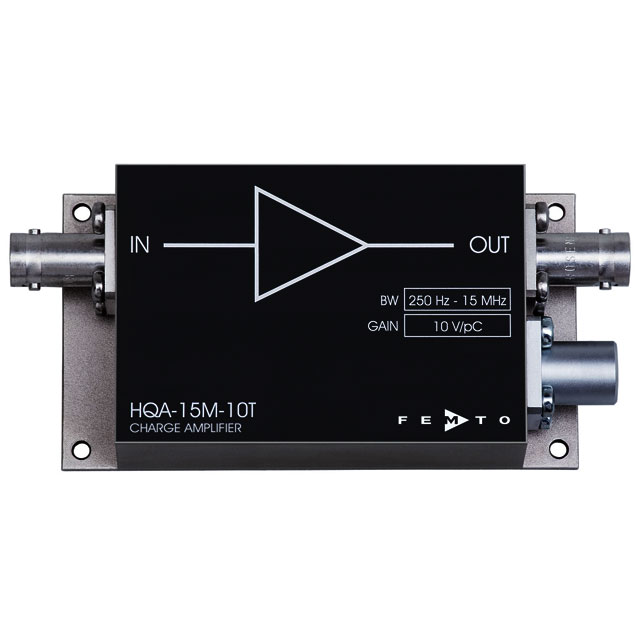 低至皮庫侖和飛庫侖范圍的電荷測量HQA-15M-10T 是為音叉晶體和縱向諧振器等交流充電源開發的。該放大器的特點是噪聲極低的設計和高增益,以便在低至皮庫侖和飛庫倫范圍的電荷測量中實現出色的靈敏度。與其他一些放大器相比,HQA-15M-10T 不需要冷卻,因此設計更緊湊,操作更容易。小型外殼可以在信號源附近使用,從而避免長電纜的信號干擾。畢竟,從 250 Hz 到 15 MHz 的大帶寬非常適合具有多種合適信號源的多種用途。