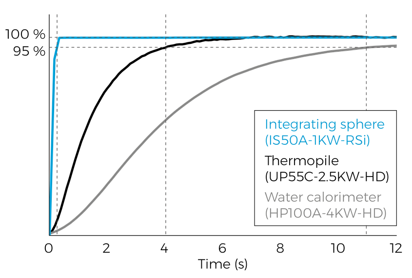 由于采用了基于光電二極管的傳感器,IS 系列功率計的測量時間不到 200 毫秒,比熱檢測器快數十倍。