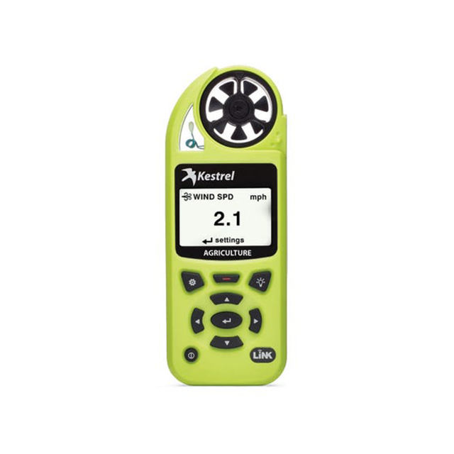Kestrel 5500AG 提供 Delta T 測量值,以幫助評估可接受的噴灑條件并確保您符合準則。Delta-T 根據環境溫度和露點提供噴涂化學品蒸發速率的指導,幫助您選擇合適的噴嘴。指南針提供方向以大限度地減少噴霧漂移。Kestrel 5500AG 無需任何額外的用戶輸入即可計算和記錄現場 Delta T、風速和風向。當與紅隼的平均風速和最大陣風測量值相結合時,農業專業人員可以確保它們每次都能安全噴灑。使用配件手提袋將紅隼放在腰帶上,以便在進行任何噴灑操作之前做好準備。