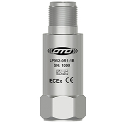 低電容,本質安全IEC認證(IECEX)環路功率傳感器,4-20 MA輸出與速度振動成比例,頂部出口2針連接器