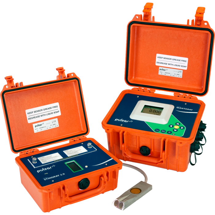 MantaRay 便攜式面速流量計可測量液位和速度,以計算明渠或管道中的流量。校準(zhǔn)很簡單:輸入管道直徑或通道尺寸,MantaRay 會自動計算流量和總流量,并在其背光 LCD 顯示屏上顯示。