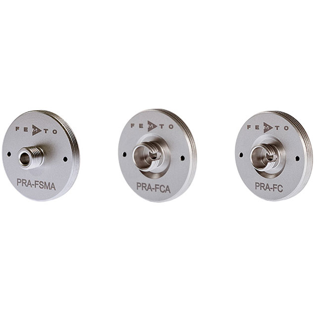 通過光接收器附件系列,FEMTO 提供光纖連接器,可以將常見類型的光纖連接到具有 1.035"- 40 外螺紋自由空間輸入的光接收器,而不會造成相當大的光損耗。用于帶有 FC 連接器的光纜的適配器(FC/PC、FC/提供 APC、FC/UPC) 和 FSMA 連接器。