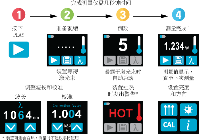 得益于低噪音和高損傷閾值,PRONTO-250-FLEX可以測量0.5 W至250 W的功率。