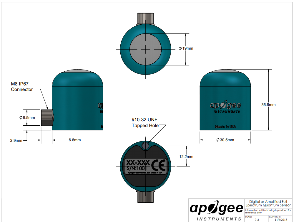 SQ-521 是一款采用 SDI-12 通信協議的數字傳感器。該傳感器采用堅固耐用的自清潔傳感器外殼設計、帶丙烯酸擴散器的陽極氧化鋁主體以及采用預鍍錫尾纖引線的優質電纜端接,可輕松連接到數據記錄器和控制器。典型應用包括室外環境、溫室和生長室中植物冠層的 PPFD 測量,以及相同環境中的反射或冠層下(透射)PPFD 測量。量子傳感器還用于測量水生環境中的 PAR/PPFD,包括生長珊瑚的鹽水水族館。