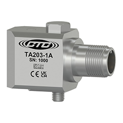 雙輸出傳感器,溫度和加速度,側出3針連接器,100 MV/G,10 MV/°C,±5%