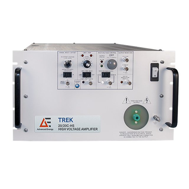 同相 Trek 20/20-HS 高壓放大器采用全固態設計、高轉換速率、充足的帶寬和低噪聲運行。其四象限有源輸出級可在整個輸出電壓范圍內將電流吸收或提供給電抗或電阻負載。對于要求苛刻的高電容或電抗負載,這種類型的輸出對于實現準確的輸出響應和高轉換速率至關重要。