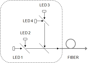 光源提供兩種配置:標準配置和高功率配置。標準配置中使用中性光束合路器。標準配置具有成本低、波長方案靈活的優(yōu)點。任何波長和白色都可以在標準配置中組合。然而,對于需要盡可能高輸出功率的應用,應選擇高功率配置,其中使用高效二向色分束器來組合不同的波長。由于并非所有可能的二向色分光鏡都有庫存,因此某些波長組合可能需要定制。