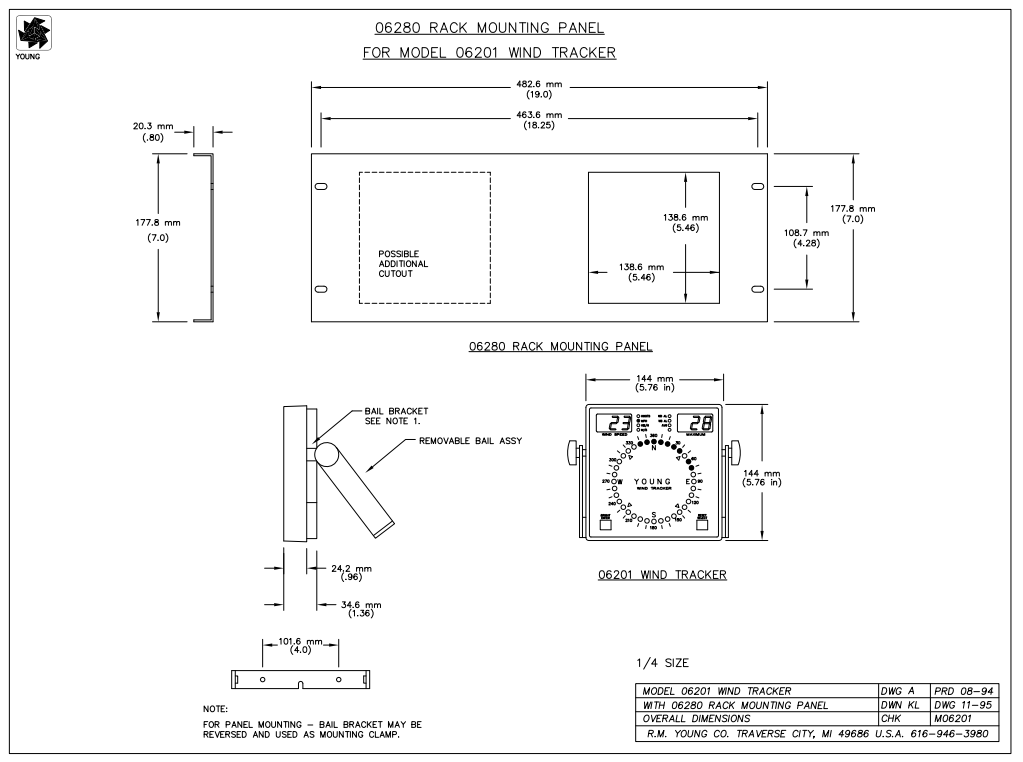 An optional Model 06280 Rack Mounting Panel is available for installation into a standard 19” rack mount instrumentation panel (Model 06282 Rack Mount Panel holds two displays).