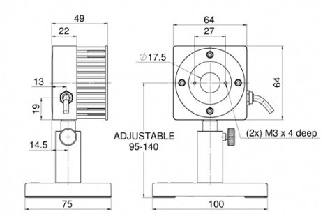 The 30A-N-18 is a thermal power/energy laser measurement sensor for high power density YAG lasers with an 17.5mm aperture. It can measure from 60mW to 30W and from 30mJ to 200J. It has the N type volume absorber and can measure 0.532 and 1.064μm. The sensor comes with a standard 1.5 meter cable for connecting to a meter or PC interface.