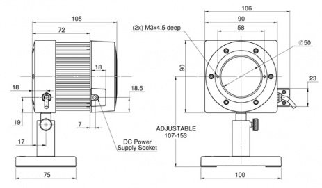 | Dimensions | 90 L x 90 W x 105 D (mm) |