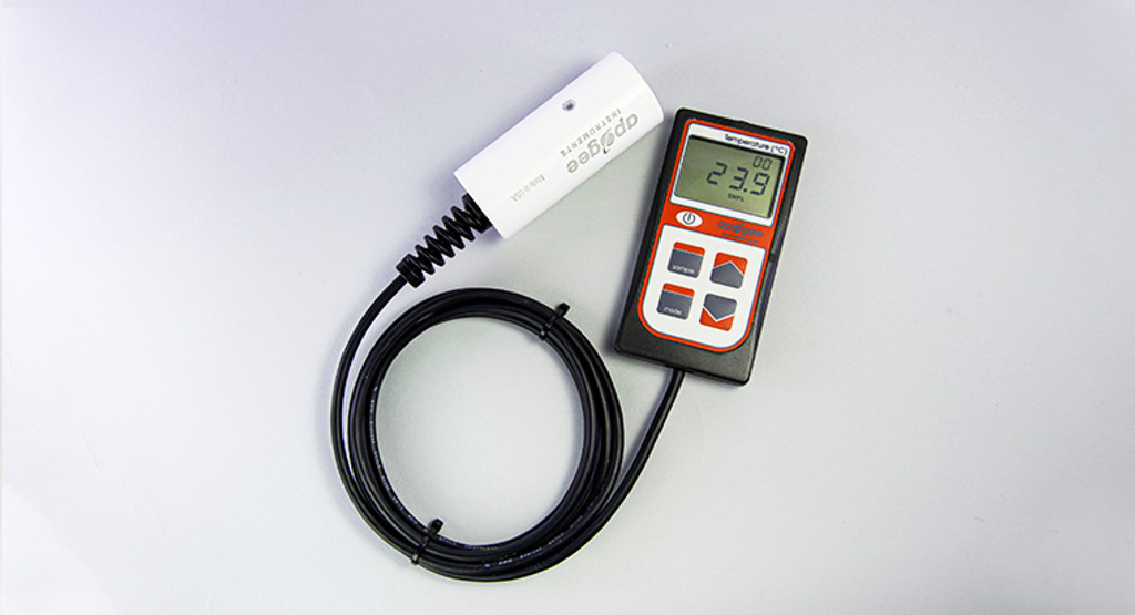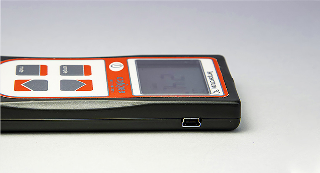 The meter has a sample and log mode, and will record an average daily value. Sample mode will record up to 99 manual measurements. Log mode will power the meter on/off to make a measurement every 30 seconds. Every 30 minutes the meter will average the sixty 30 second measurements and record the averaged value to memory. The meter can store up to 99 averages, once full it will start to overwrite the oldest measurement with new ones. An average daily value will be recorded from the 48 averaged measurements (making a 24 hr period). Sample and log measurements can be reviewed on the LCD display or by downloading the data to a computer, however, the average daily value can only be viewed by downloading the data to a computer. Downloading data to a computer requires the AC-100 communication cable (a standard USB cable will not work) and ApogeeAMS software. Comes with a free protective carrying case.