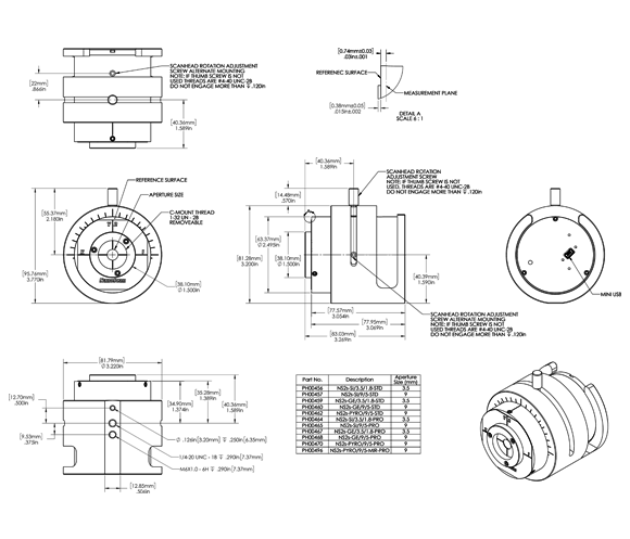 Where is the detector in the NanoScan?The detector is mounted internal to the NanoScan behind the rotating slits. This position is not important to the measurements. The measurement plane is the scan plane of the slits, which is nominally 0.74mm +/-0.025 mm from the Reference Surface on the front of the NanoScan. Please refer to the mechanical drawings in Appendix B of the NanoScan Operational Manual.