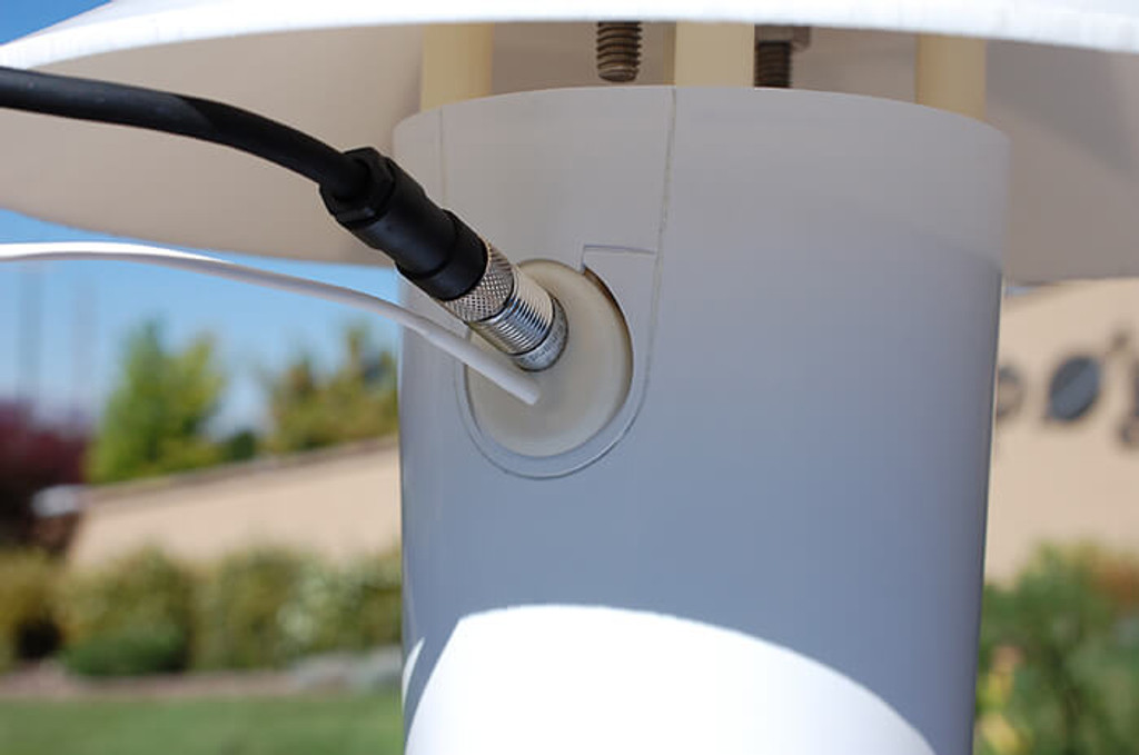 The TS-100 is the only shielding model for the apogee 12 volt fan suction radiation shield. Its unique aerodynamic shape and rugged low power consumption fan make it a research grade fan suction shield that can be used in batteries or solar power plants. The shield provides excellent sensor protection and uses a sensor port adapter plug to accommodate various combinations of thermistors, PRTs, and humidity probes. Typical applications include air temperature and humidity measurements in weather networks, usually for weather forecasting, and solar energy sites. Fan suction shields are also important in accurately measuring air temperature and humidity gradients above the surface and in monitoring climate change.