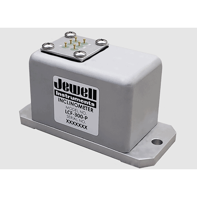 The Jewell LCF-300 Series flexure suspension servo fluid damped inclinometer is a ±1° to ±90° device designed for applications where high levels of shock and vibration are present. LCF-300 units are characterized by excellent turn on repeatability and very low hysteresis. It is available in three different versions (D, L, or S), varying input and output, and with either a 6 pin connector or a pin-terminal option in order to meet your specific needs.
