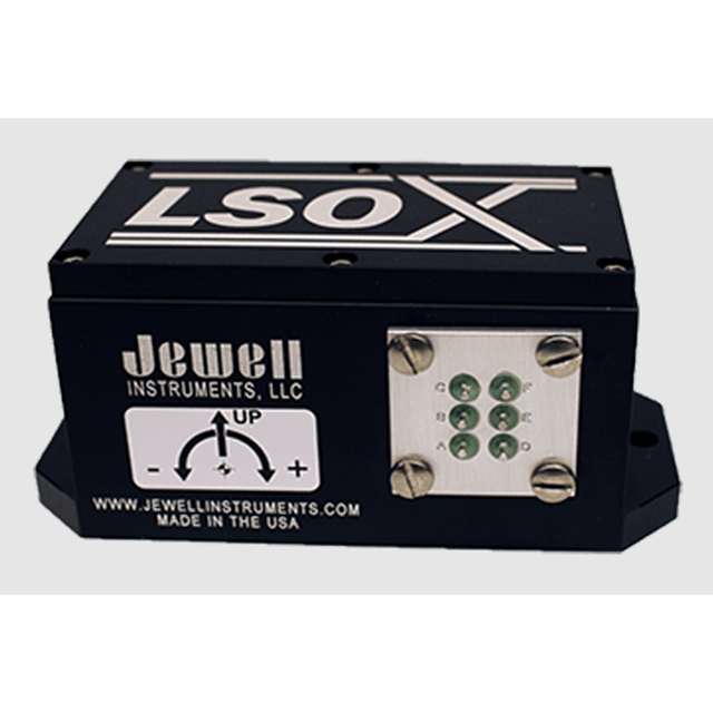 The Jewell LSOX Single-Axis Analog Inclinometer series are a rugged, high precision tilt sensor designed for peak performance in extreme conditions. These RoHS compliant sensors feature a fluid damped mechanism to deliver superior noise rejection in high shock and vibration environments as well as excellent output stability. Units are available with a 6-pin connector, pin-terminals, or flying leads and in three different output versions (D, L, & S). LSOX-S is available with CE Certification.